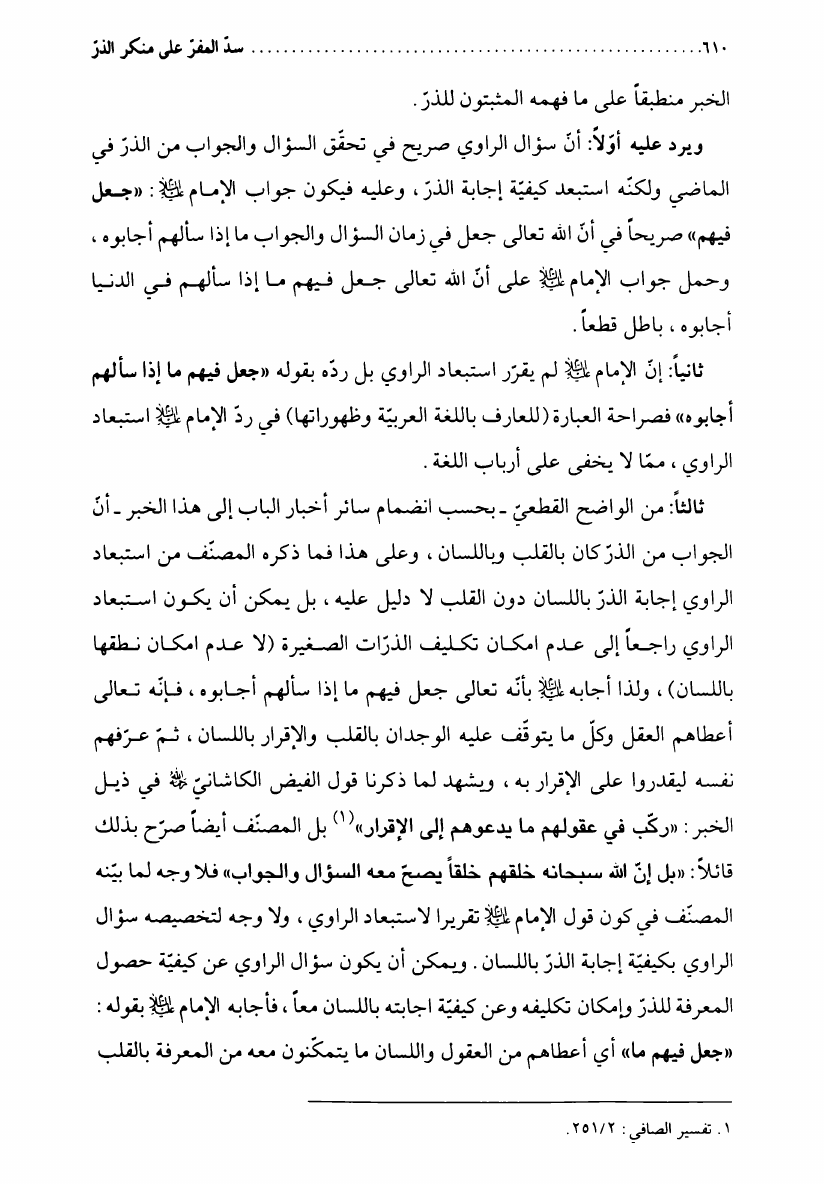 سد المفر، على منكر عالم الذر