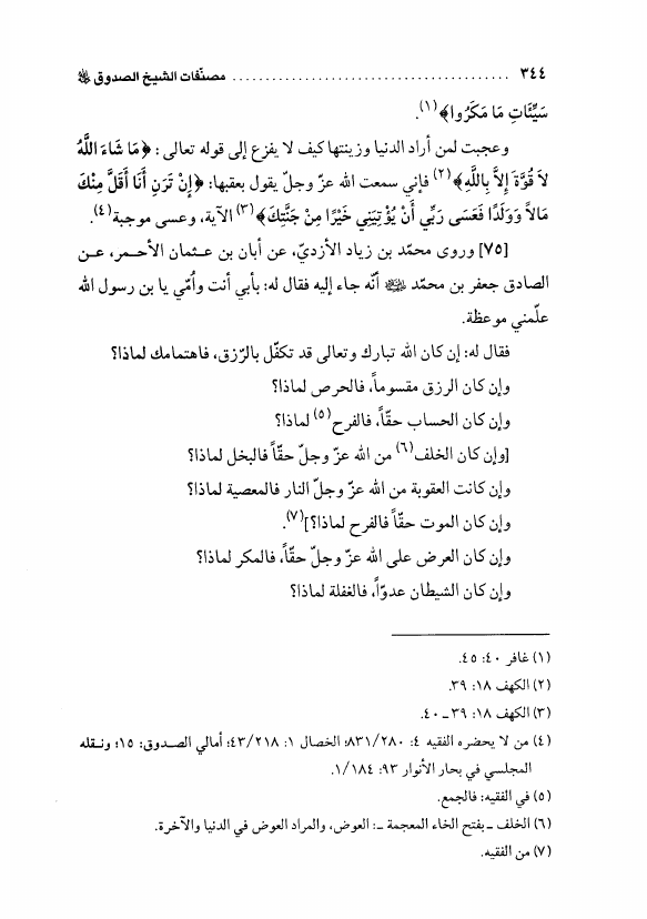 مصنفات الشيخ الصدوق - الإعتقادات، صفات الشيعة، فضائل الشيعة، مصادقة الإخوان، المواعظ، فضائل الأشهر الثلاثة