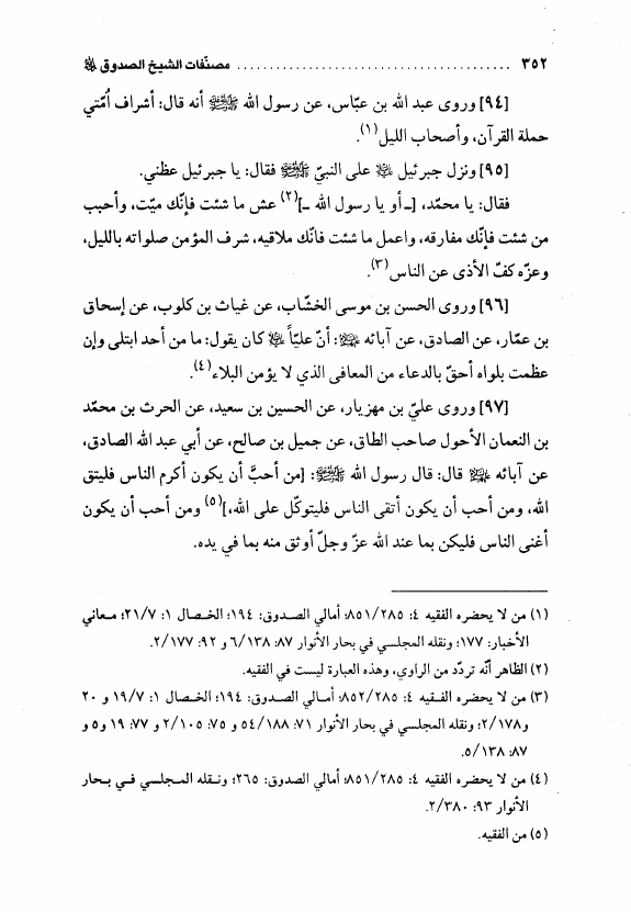 مصنفات الشيخ الصدوق - الإعتقادات، صفات الشيعة، فضائل الشيعة، مصادقة الإخوان، المواعظ، فضائل الأشهر الثلاثة