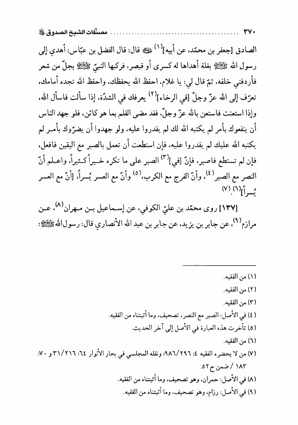 مصنفات الشيخ الصدوق - الإعتقادات، صفات الشيعة، فضائل الشيعة، مصادقة الإخوان، المواعظ، فضائل الأشهر الثلاثة