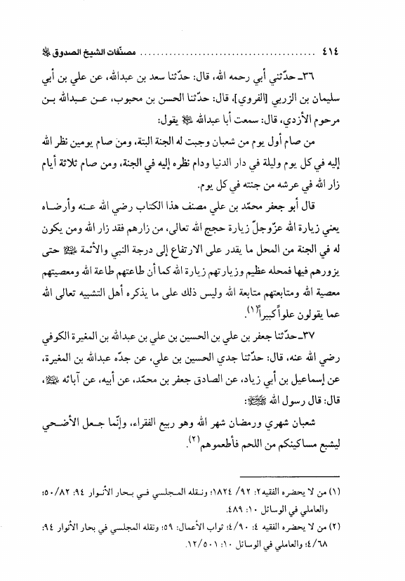 مصنفات الشيخ الصدوق - الإعتقادات، صفات الشيعة، فضائل الشيعة، مصادقة الإخوان، المواعظ، فضائل الأشهر الثلاثة