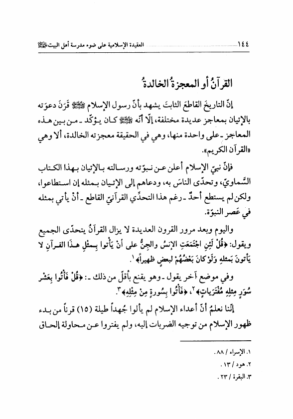العقيدة الإسلامية على ضوء مدرسة أهل البيت ع