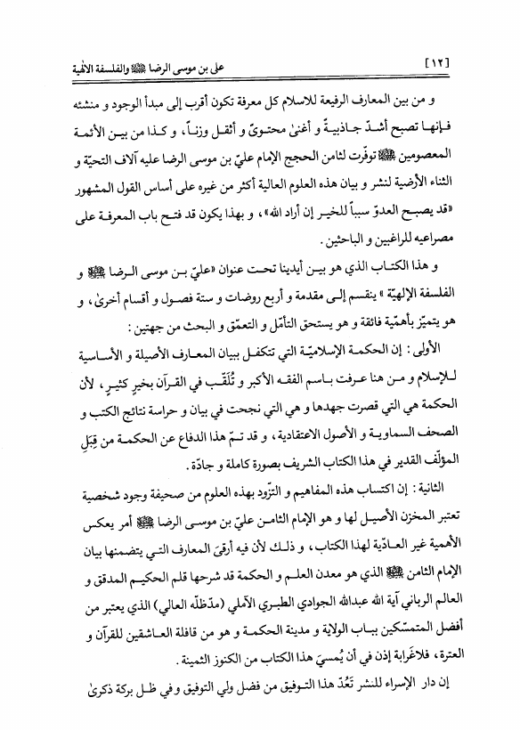 عليّ بن موسى الرضا ع والفلسفة الإلهية