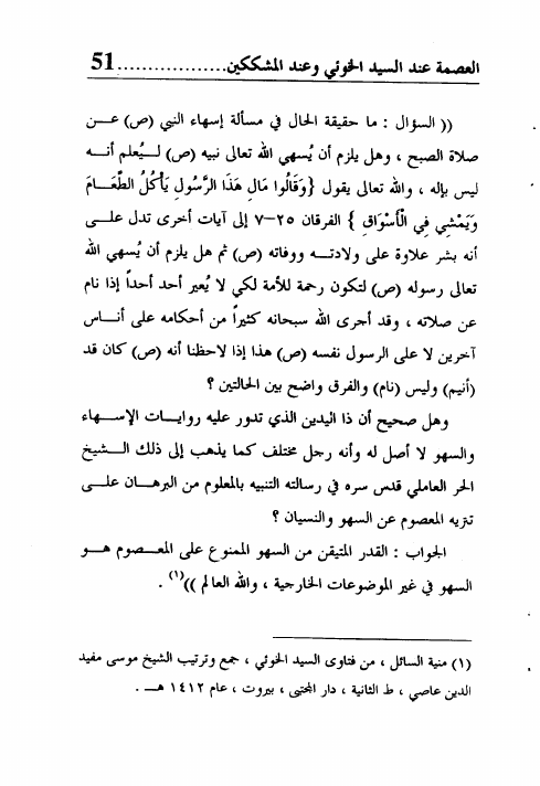 العصمة عند السيد الخوئي وعند المشككين