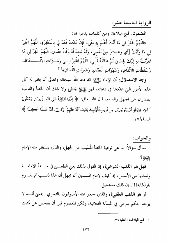 العصمة بين المبدأ الشيعي والمفاد الروائي