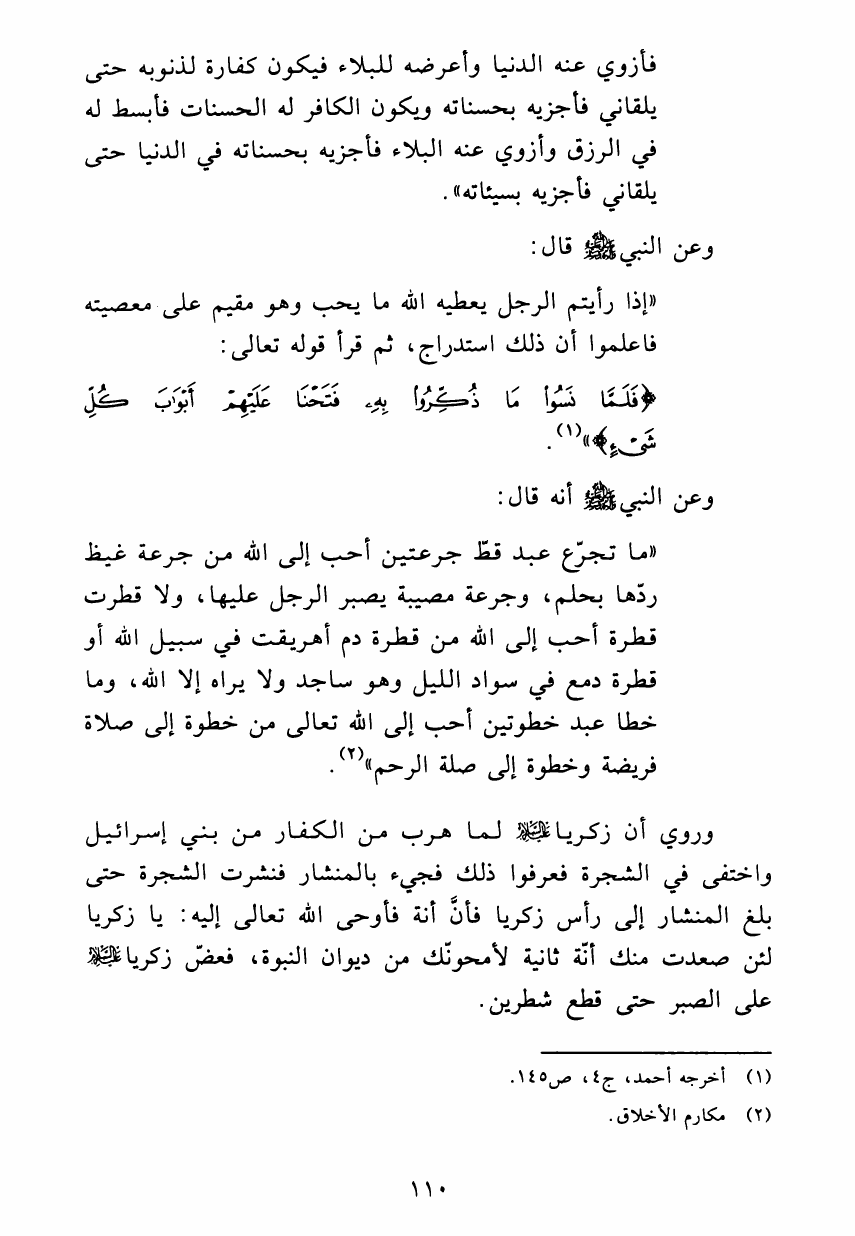 أحوال السالكين ، الصبر والشكر، الرجاء والخوف، الفقر والزهد