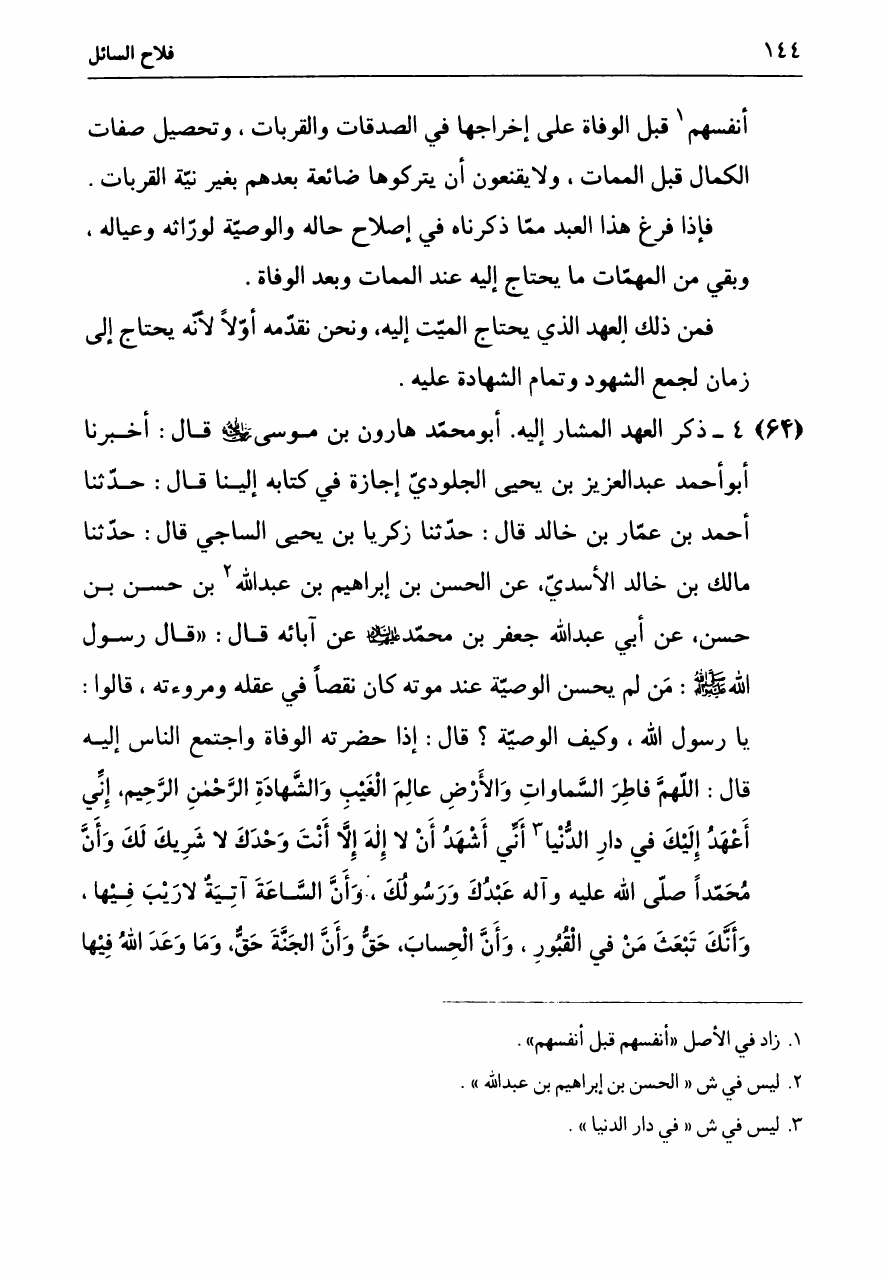 فلاح السائل ونجاح المسائل في عمل اليوم والليلة