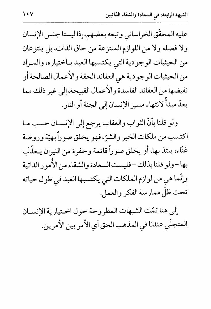 نام کتاب : لب الأثر في الجبر والقدر ، وتليه رسالة أخرى في الأمر بين الأمرين، تقريراً لمحاضرات السيد الخميني نویسنده : الشيخ جعفر السبحاني جلد : 1 صفحه : 107