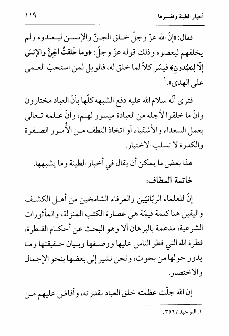 نام کتاب : لب الأثر في الجبر والقدر ، وتليه رسالة أخرى في الأمر بين الأمرين، تقريراً لمحاضرات السيد الخميني نویسنده : الشيخ جعفر السبحاني جلد : 1 صفحه : 119