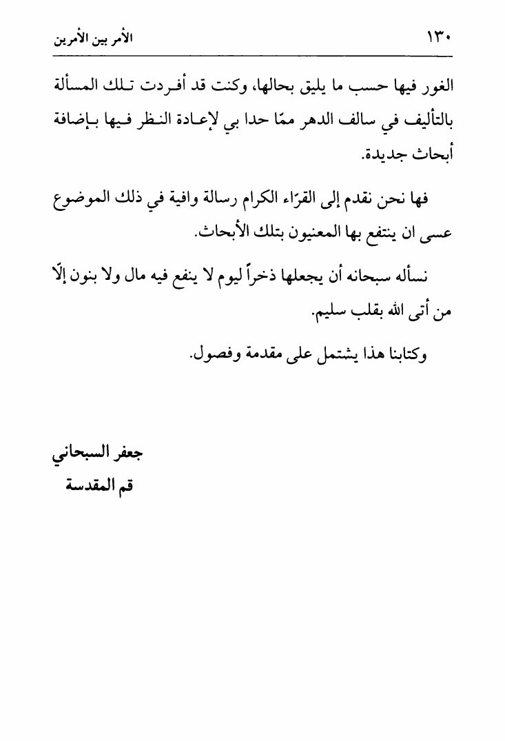 نام کتاب : لب الأثر في الجبر والقدر ، وتليه رسالة أخرى في الأمر بين الأمرين، تقريراً لمحاضرات السيد الخميني نویسنده : الشيخ جعفر السبحاني جلد : 1 صفحه : 130