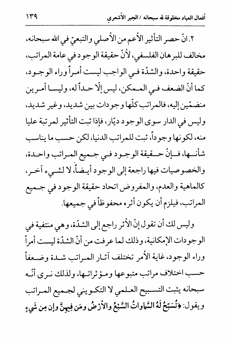 نام کتاب : لب الأثر في الجبر والقدر ، وتليه رسالة أخرى في الأمر بين الأمرين، تقريراً لمحاضرات السيد الخميني نویسنده : الشيخ جعفر السبحاني جلد : 1 صفحه : 139