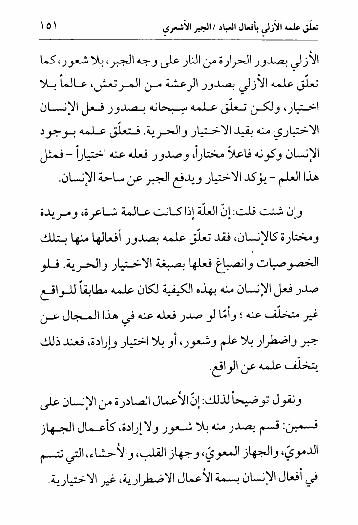 نام کتاب : لب الأثر في الجبر والقدر ، وتليه رسالة أخرى في الأمر بين الأمرين، تقريراً لمحاضرات السيد الخميني نویسنده : الشيخ جعفر السبحاني جلد : 1 صفحه : 151