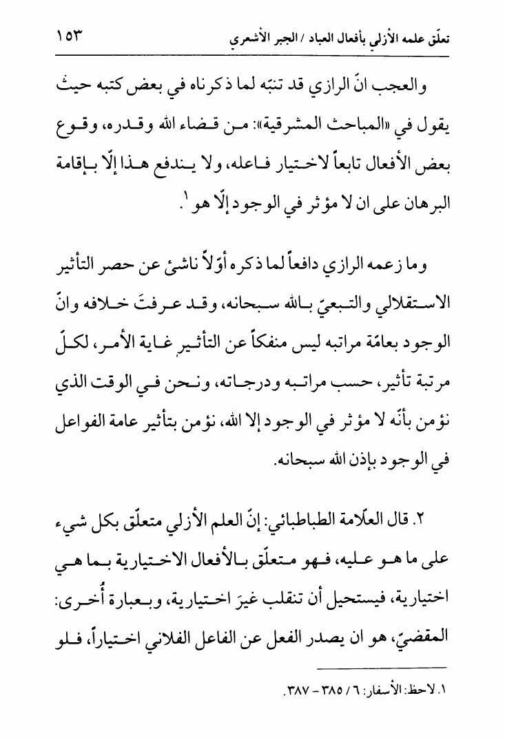 نام کتاب : لب الأثر في الجبر والقدر ، وتليه رسالة أخرى في الأمر بين الأمرين، تقريراً لمحاضرات السيد الخميني نویسنده : الشيخ جعفر السبحاني جلد : 1 صفحه : 153