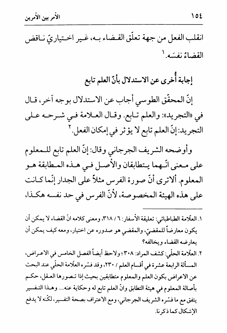 نام کتاب : لب الأثر في الجبر والقدر ، وتليه رسالة أخرى في الأمر بين الأمرين، تقريراً لمحاضرات السيد الخميني نویسنده : الشيخ جعفر السبحاني جلد : 1 صفحه : 154