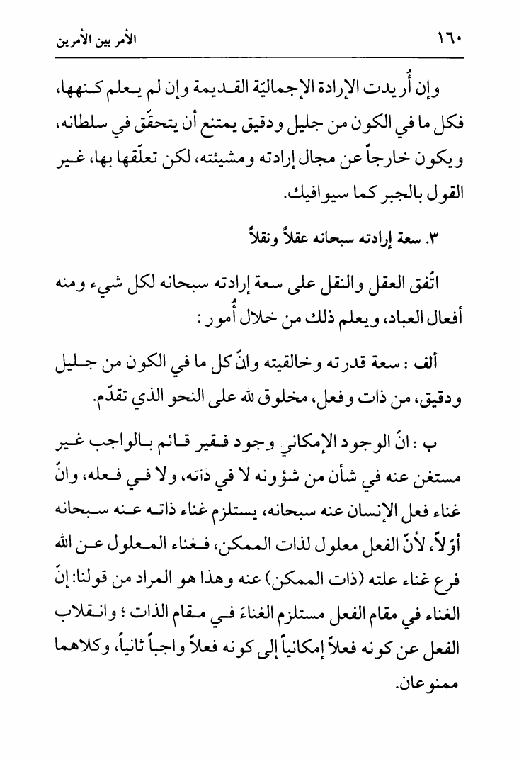 نام کتاب : لب الأثر في الجبر والقدر ، وتليه رسالة أخرى في الأمر بين الأمرين، تقريراً لمحاضرات السيد الخميني نویسنده : الشيخ جعفر السبحاني جلد : 1 صفحه : 160