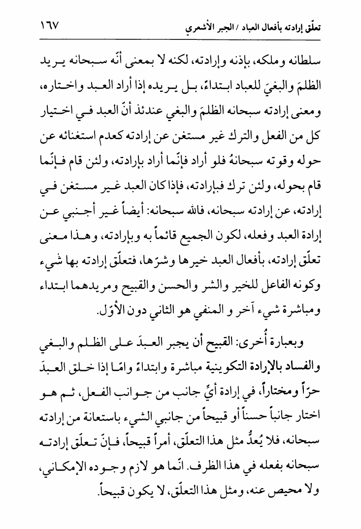 نام کتاب : لب الأثر في الجبر والقدر ، وتليه رسالة أخرى في الأمر بين الأمرين، تقريراً لمحاضرات السيد الخميني نویسنده : الشيخ جعفر السبحاني جلد : 1 صفحه : 167