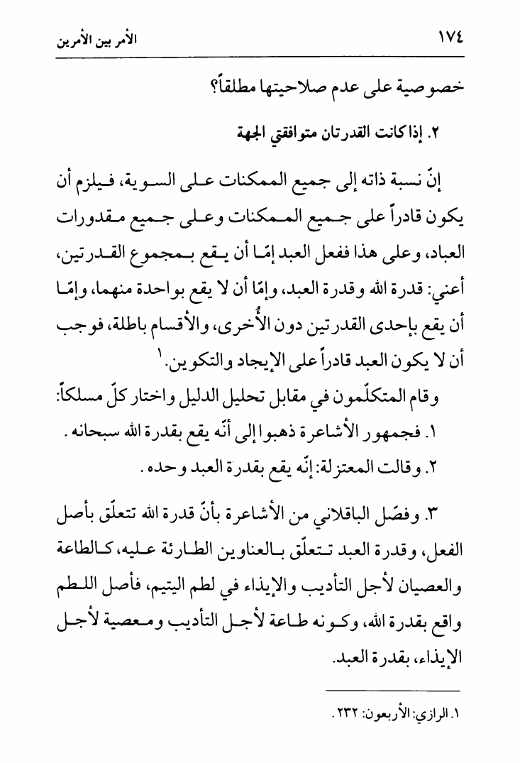 نام کتاب : لب الأثر في الجبر والقدر ، وتليه رسالة أخرى في الأمر بين الأمرين، تقريراً لمحاضرات السيد الخميني نویسنده : الشيخ جعفر السبحاني جلد : 1 صفحه : 174