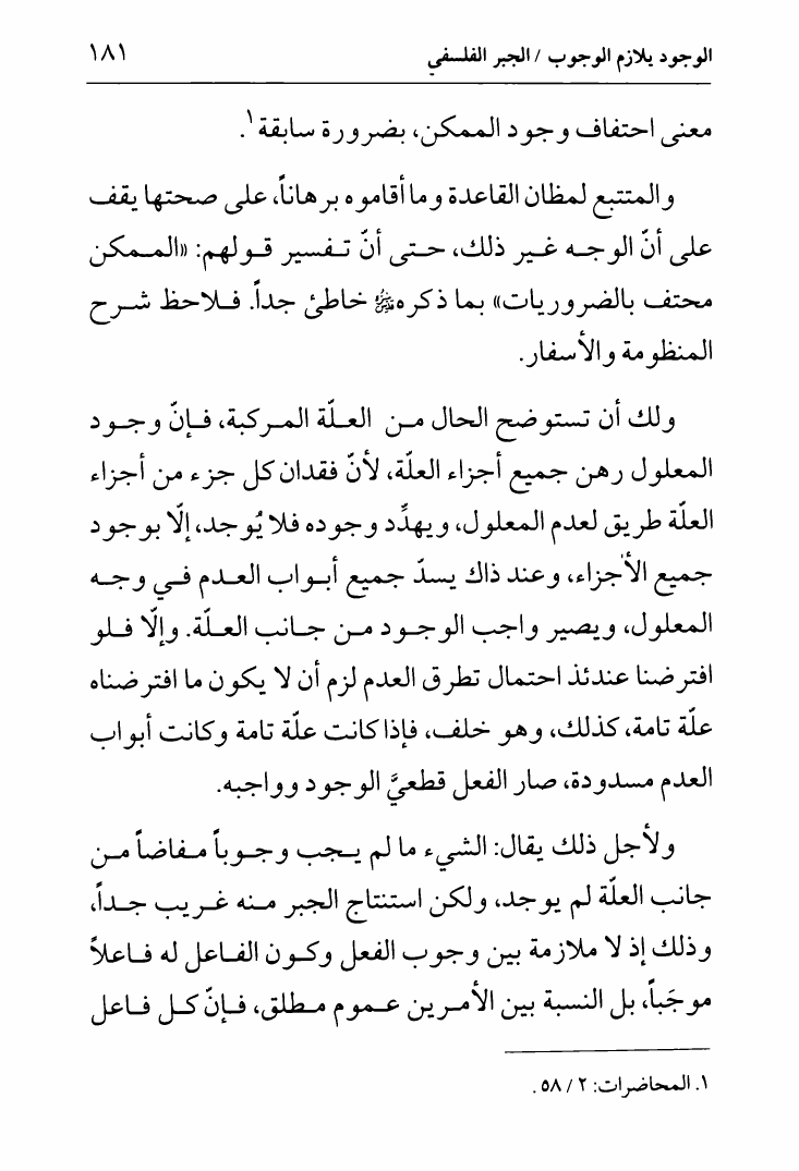 نام کتاب : لب الأثر في الجبر والقدر ، وتليه رسالة أخرى في الأمر بين الأمرين، تقريراً لمحاضرات السيد الخميني نویسنده : الشيخ جعفر السبحاني جلد : 1 صفحه : 181