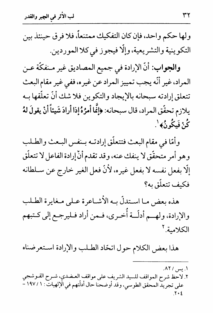 نام کتاب : لب الأثر في الجبر والقدر ، وتليه رسالة أخرى في الأمر بين الأمرين، تقريراً لمحاضرات السيد الخميني نویسنده : الشيخ جعفر السبحاني جلد : 1 صفحه : 32