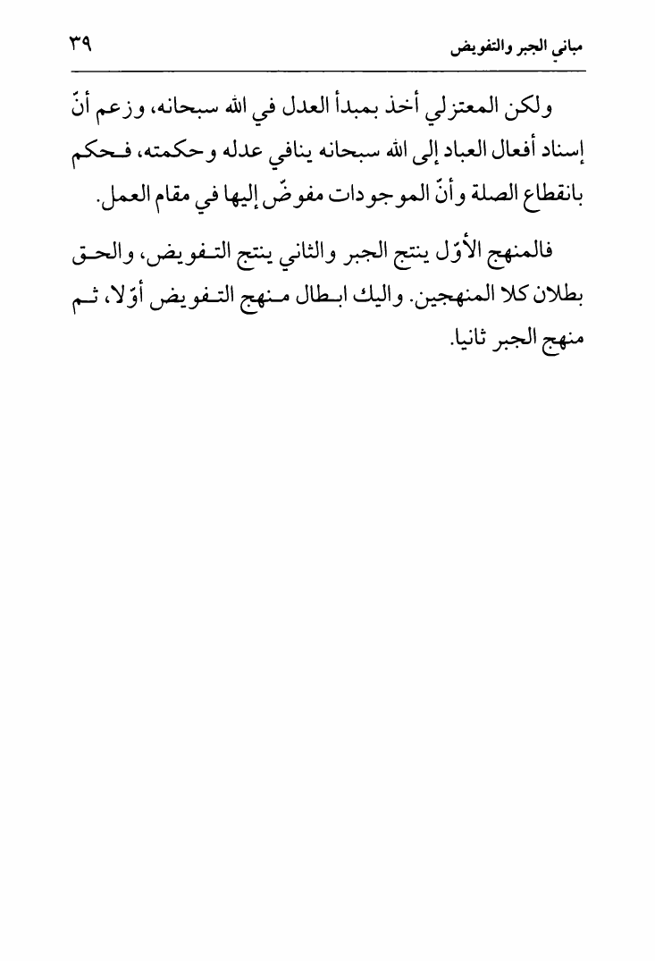 نام کتاب : لب الأثر في الجبر والقدر ، وتليه رسالة أخرى في الأمر بين الأمرين، تقريراً لمحاضرات السيد الخميني نویسنده : الشيخ جعفر السبحاني جلد : 1 صفحه : 39