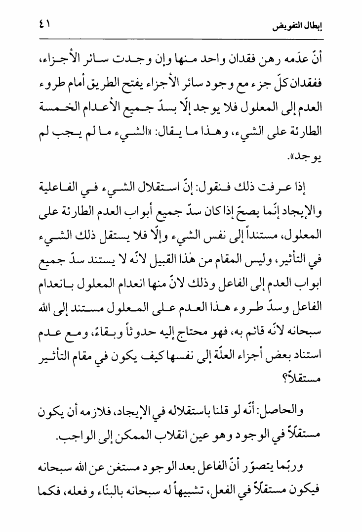 نام کتاب : لب الأثر في الجبر والقدر ، وتليه رسالة أخرى في الأمر بين الأمرين، تقريراً لمحاضرات السيد الخميني نویسنده : الشيخ جعفر السبحاني جلد : 1 صفحه : 41