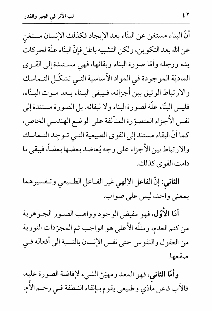 نام کتاب : لب الأثر في الجبر والقدر ، وتليه رسالة أخرى في الأمر بين الأمرين، تقريراً لمحاضرات السيد الخميني نویسنده : الشيخ جعفر السبحاني جلد : 1 صفحه : 42