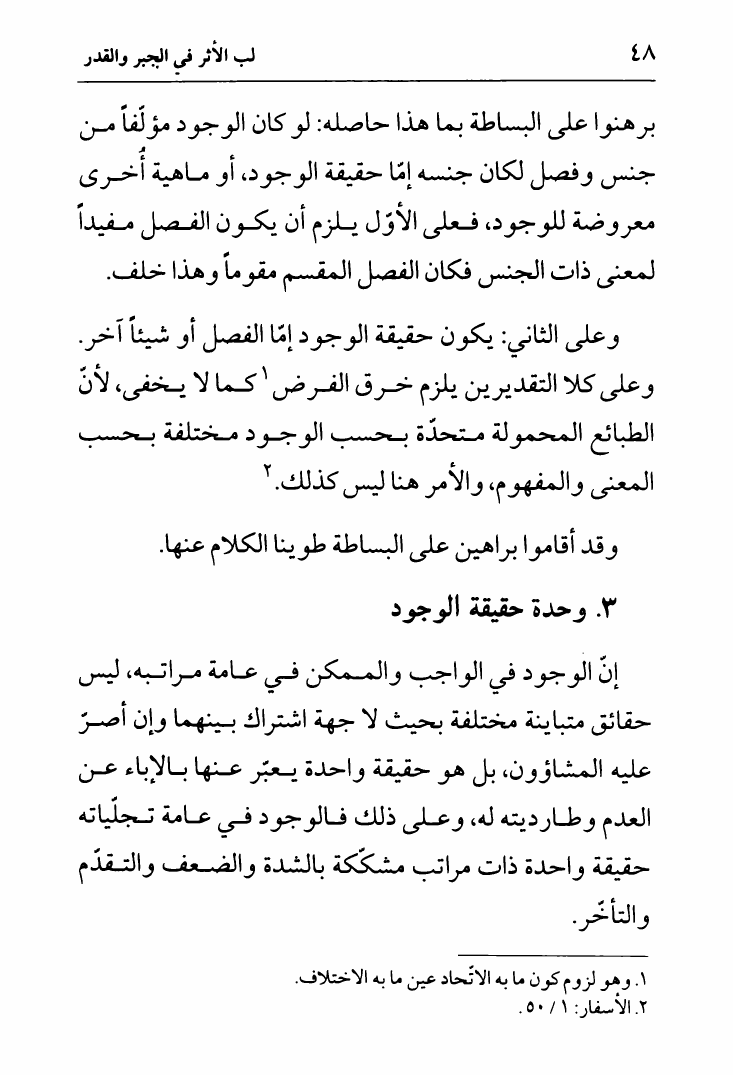 نام کتاب : لب الأثر في الجبر والقدر ، وتليه رسالة أخرى في الأمر بين الأمرين، تقريراً لمحاضرات السيد الخميني نویسنده : الشيخ جعفر السبحاني جلد : 1 صفحه : 48