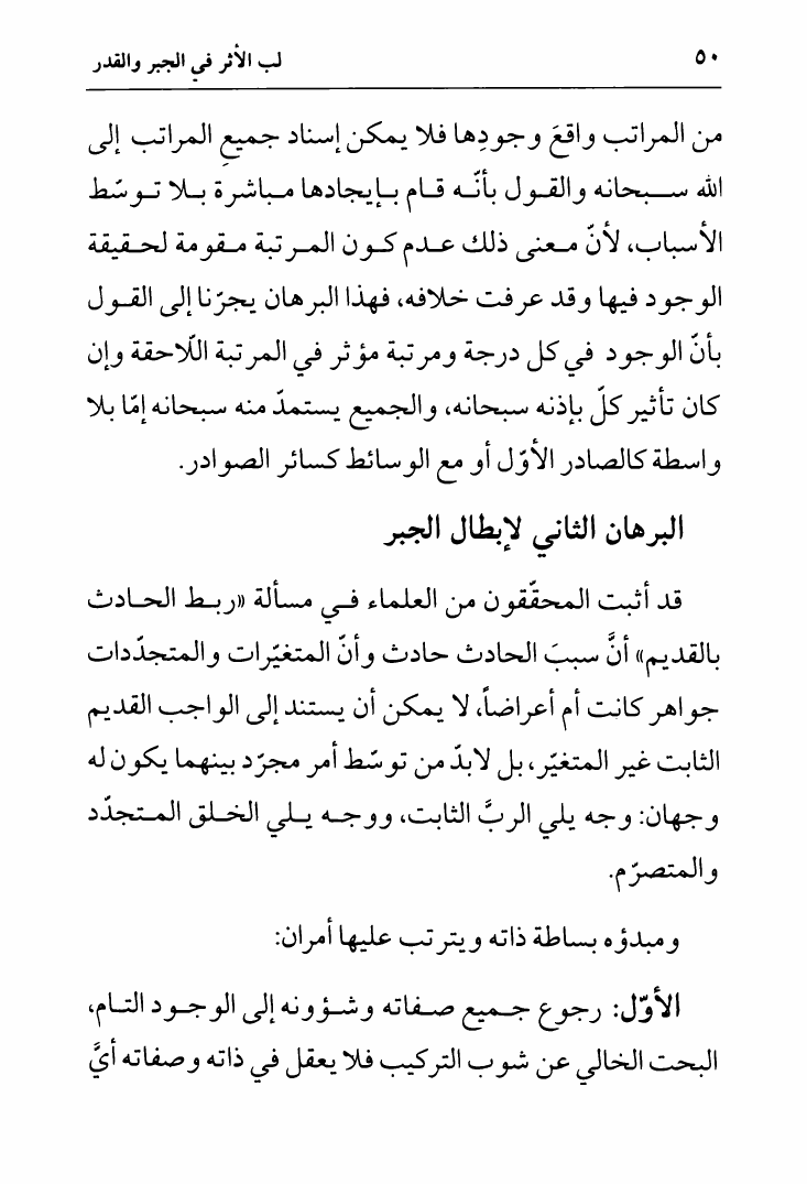 نام کتاب : لب الأثر في الجبر والقدر ، وتليه رسالة أخرى في الأمر بين الأمرين، تقريراً لمحاضرات السيد الخميني نویسنده : الشيخ جعفر السبحاني جلد : 1 صفحه : 50