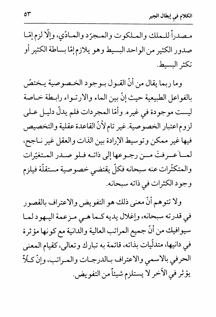 نام کتاب : لب الأثر في الجبر والقدر ، وتليه رسالة أخرى في الأمر بين الأمرين، تقريراً لمحاضرات السيد الخميني نویسنده : الشيخ جعفر السبحاني جلد : 1 صفحه : 53