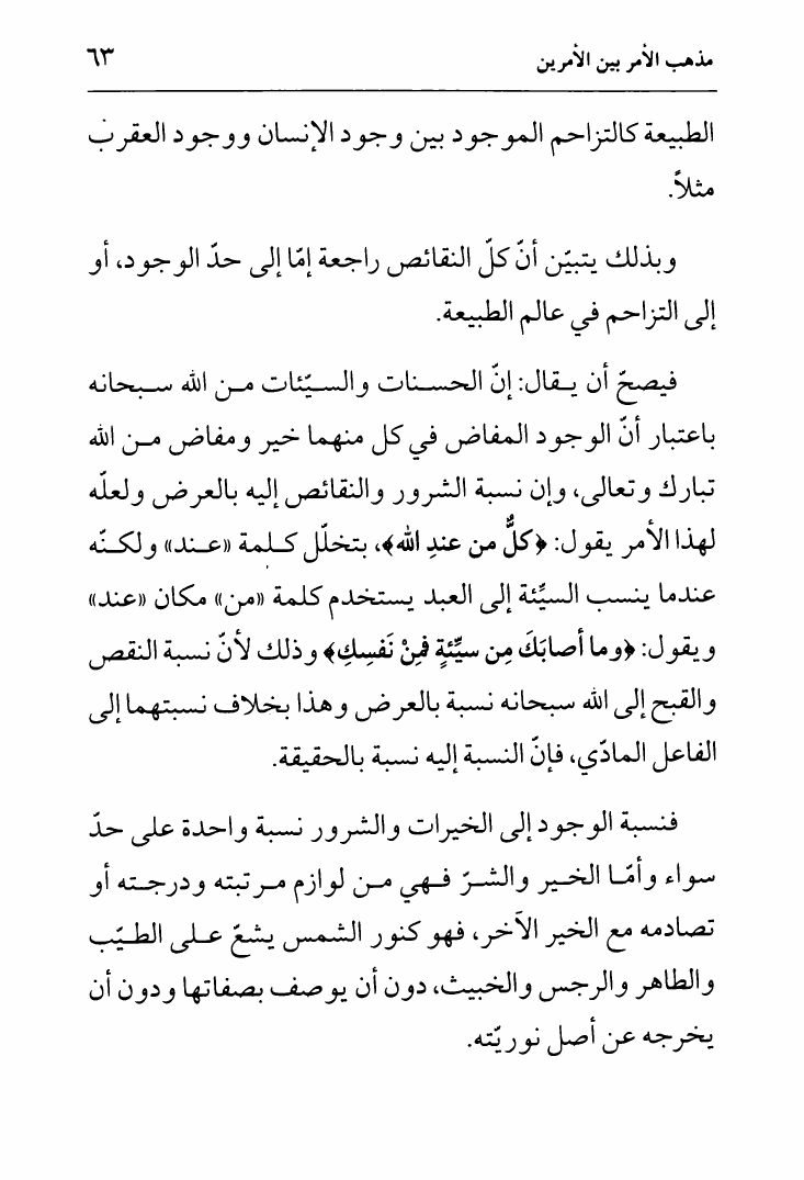 نام کتاب : لب الأثر في الجبر والقدر ، وتليه رسالة أخرى في الأمر بين الأمرين، تقريراً لمحاضرات السيد الخميني نویسنده : الشيخ جعفر السبحاني جلد : 1 صفحه : 63