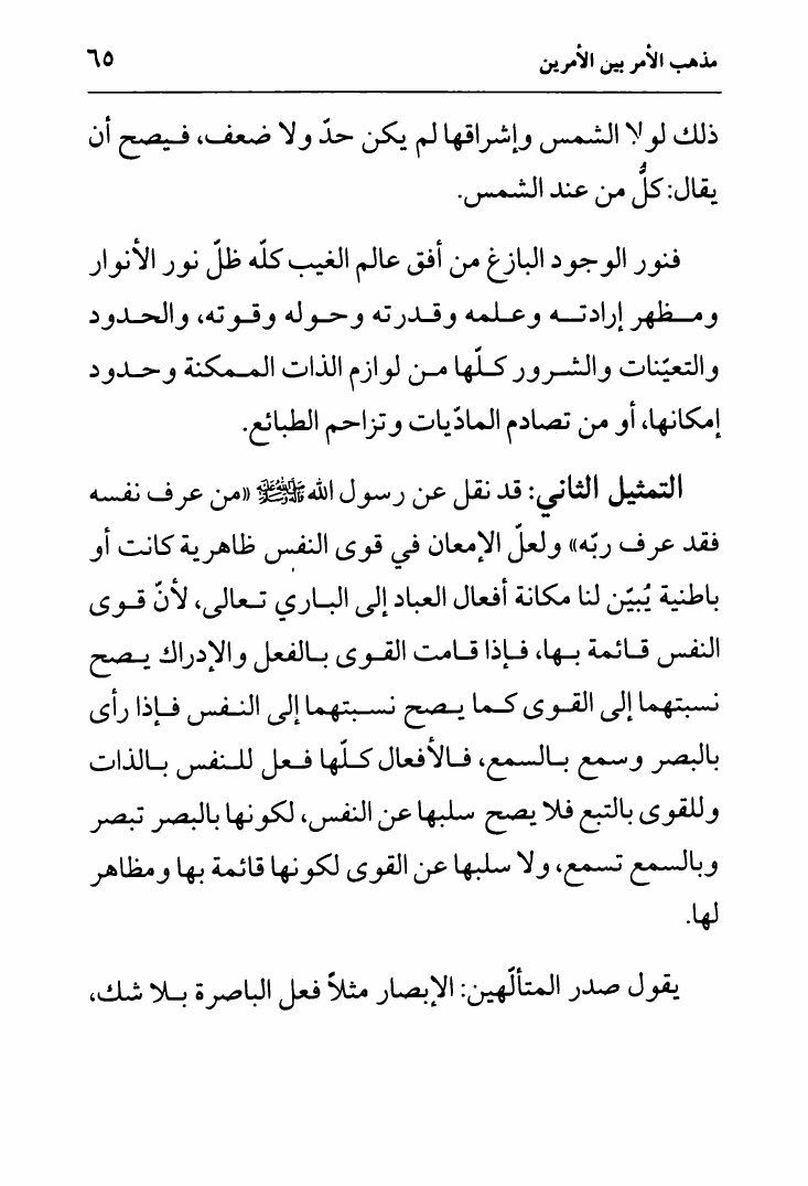 نام کتاب : لب الأثر في الجبر والقدر ، وتليه رسالة أخرى في الأمر بين الأمرين، تقريراً لمحاضرات السيد الخميني نویسنده : الشيخ جعفر السبحاني جلد : 1 صفحه : 65
