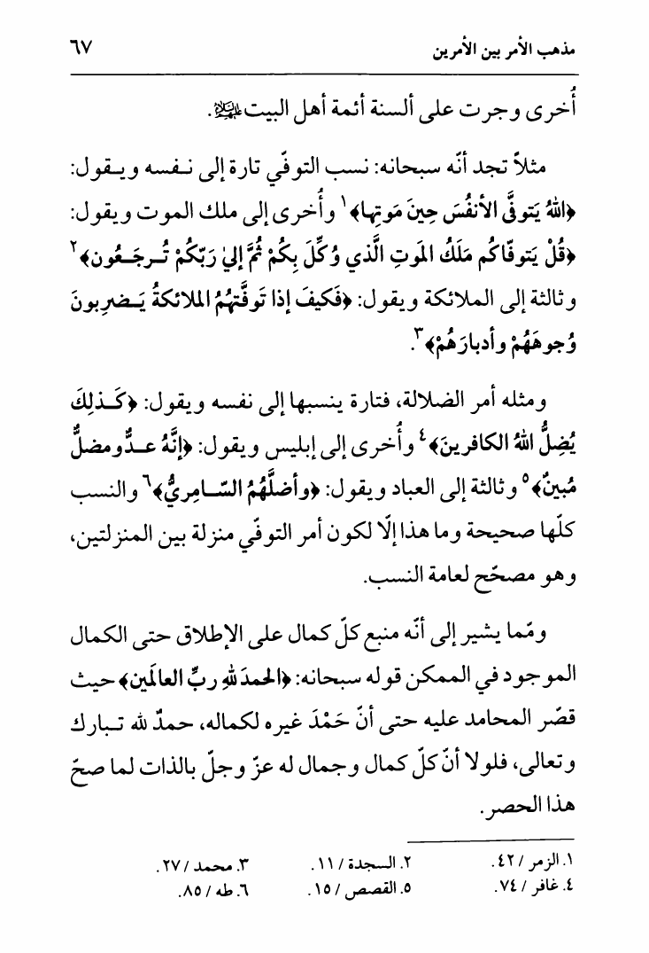 نام کتاب : لب الأثر في الجبر والقدر ، وتليه رسالة أخرى في الأمر بين الأمرين، تقريراً لمحاضرات السيد الخميني نویسنده : الشيخ جعفر السبحاني جلد : 1 صفحه : 67