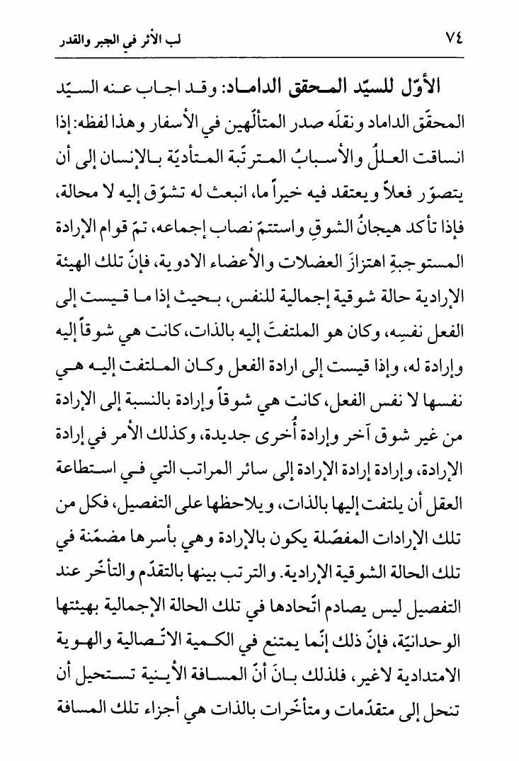 نام کتاب : لب الأثر في الجبر والقدر ، وتليه رسالة أخرى في الأمر بين الأمرين، تقريراً لمحاضرات السيد الخميني نویسنده : الشيخ جعفر السبحاني جلد : 1 صفحه : 74