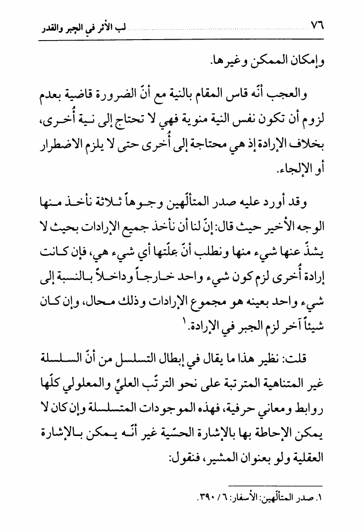نام کتاب : لب الأثر في الجبر والقدر ، وتليه رسالة أخرى في الأمر بين الأمرين، تقريراً لمحاضرات السيد الخميني نویسنده : الشيخ جعفر السبحاني جلد : 1 صفحه : 76