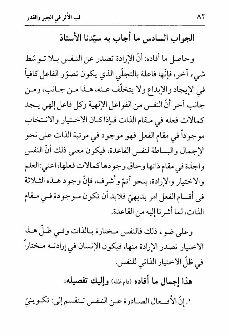 نام کتاب : لب الأثر في الجبر والقدر ، وتليه رسالة أخرى في الأمر بين الأمرين، تقريراً لمحاضرات السيد الخميني نویسنده : الشيخ جعفر السبحاني جلد : 1 صفحه : 82