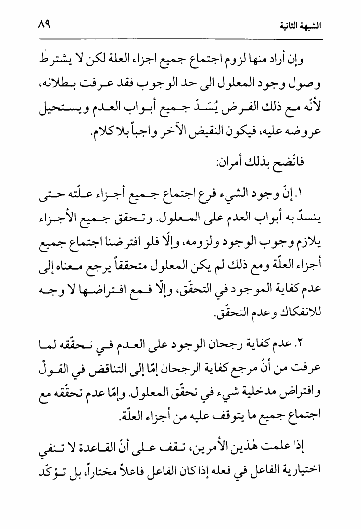نام کتاب : لب الأثر في الجبر والقدر ، وتليه رسالة أخرى في الأمر بين الأمرين، تقريراً لمحاضرات السيد الخميني نویسنده : الشيخ جعفر السبحاني جلد : 1 صفحه : 89