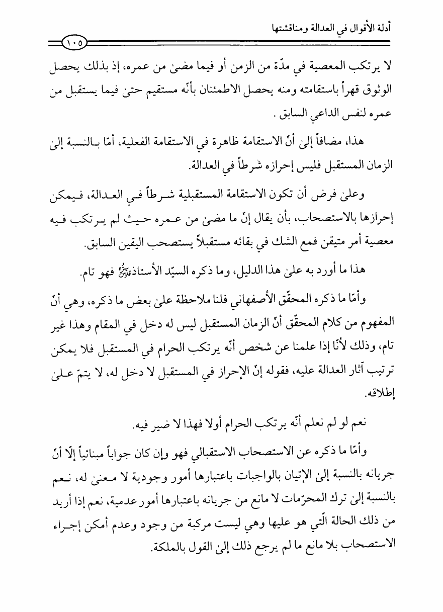 نام کتاب : العدالة في فقه أهل البيت عليهم السلام، تقريراً لبحث أية الله الحاج الشيخ مسلم الداوري نویسنده : الشيخ محمد علي صالح المعلم جلد : 1 صفحه : 105