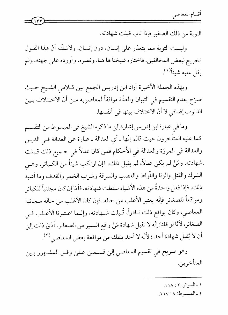 نام کتاب : العدالة في فقه أهل البيت عليهم السلام، تقريراً لبحث أية الله الحاج الشيخ مسلم الداوري نویسنده : الشيخ محمد علي صالح المعلم جلد : 1 صفحه : 133