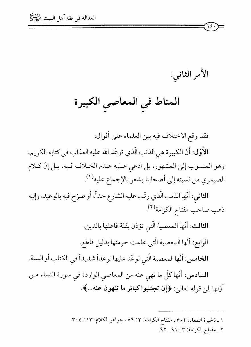 نام کتاب : العدالة في فقه أهل البيت عليهم السلام، تقريراً لبحث أية الله الحاج الشيخ مسلم الداوري نویسنده : الشيخ محمد علي صالح المعلم جلد : 1 صفحه : 140