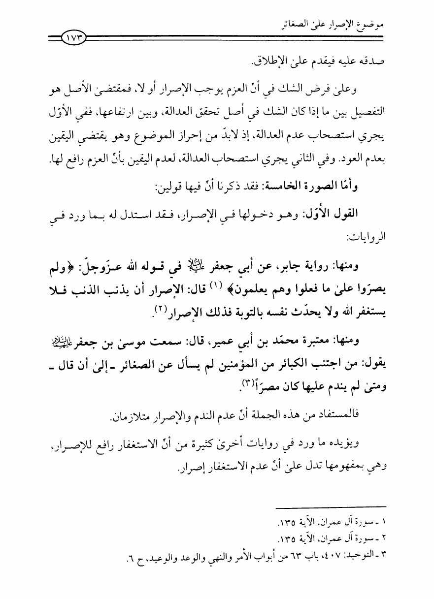 نام کتاب : العدالة في فقه أهل البيت عليهم السلام، تقريراً لبحث أية الله الحاج الشيخ مسلم الداوري نویسنده : الشيخ محمد علي صالح المعلم جلد : 1 صفحه : 173