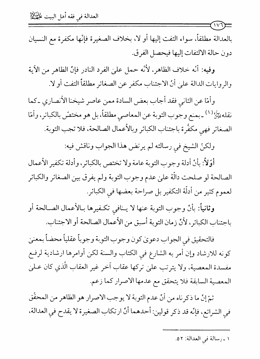 نام کتاب : العدالة في فقه أهل البيت عليهم السلام، تقريراً لبحث أية الله الحاج الشيخ مسلم الداوري نویسنده : الشيخ محمد علي صالح المعلم جلد : 1 صفحه : 176