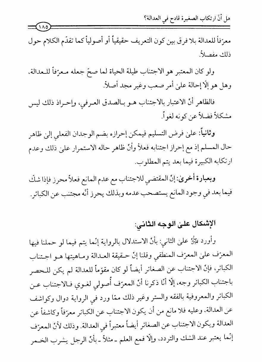 نام کتاب : العدالة في فقه أهل البيت عليهم السلام، تقريراً لبحث أية الله الحاج الشيخ مسلم الداوري نویسنده : الشيخ محمد علي صالح المعلم جلد : 1 صفحه : 185