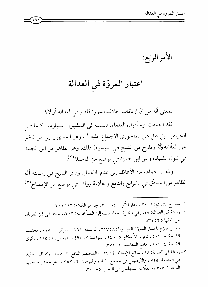 نام کتاب : العدالة في فقه أهل البيت عليهم السلام، تقريراً لبحث أية الله الحاج الشيخ مسلم الداوري نویسنده : الشيخ محمد علي صالح المعلم جلد : 1 صفحه : 191