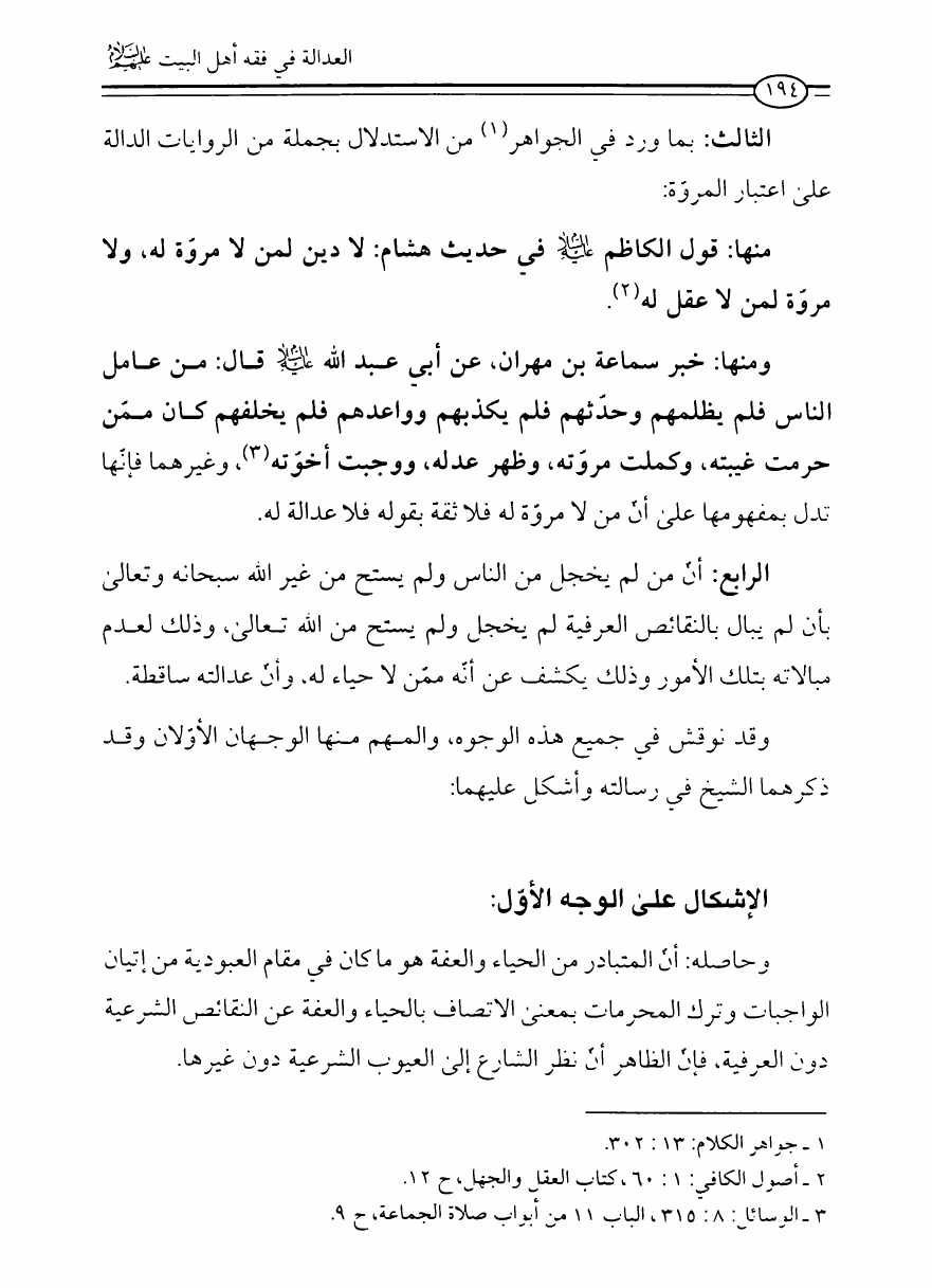 نام کتاب : العدالة في فقه أهل البيت عليهم السلام، تقريراً لبحث أية الله الحاج الشيخ مسلم الداوري نویسنده : الشيخ محمد علي صالح المعلم جلد : 1 صفحه : 194