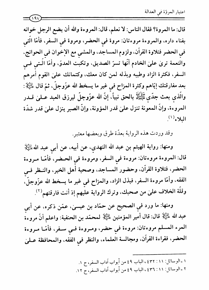 نام کتاب : العدالة في فقه أهل البيت عليهم السلام، تقريراً لبحث أية الله الحاج الشيخ مسلم الداوري نویسنده : الشيخ محمد علي صالح المعلم جلد : 1 صفحه : 197