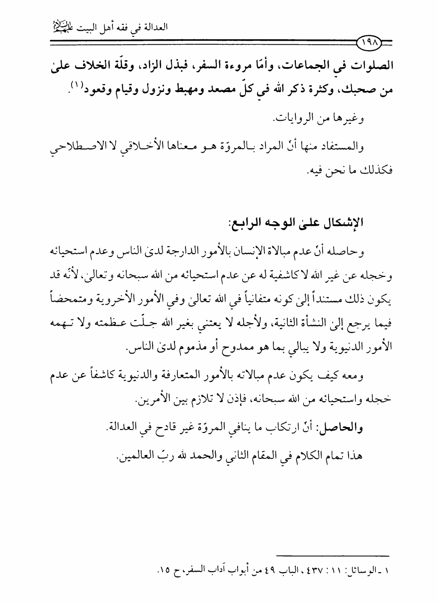نام کتاب : العدالة في فقه أهل البيت عليهم السلام، تقريراً لبحث أية الله الحاج الشيخ مسلم الداوري نویسنده : الشيخ محمد علي صالح المعلم جلد : 1 صفحه : 198