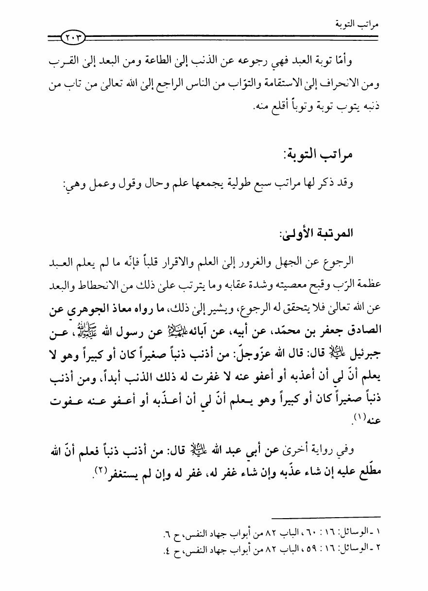 نام کتاب : العدالة في فقه أهل البيت عليهم السلام، تقريراً لبحث أية الله الحاج الشيخ مسلم الداوري نویسنده : الشيخ محمد علي صالح المعلم جلد : 1 صفحه : 203