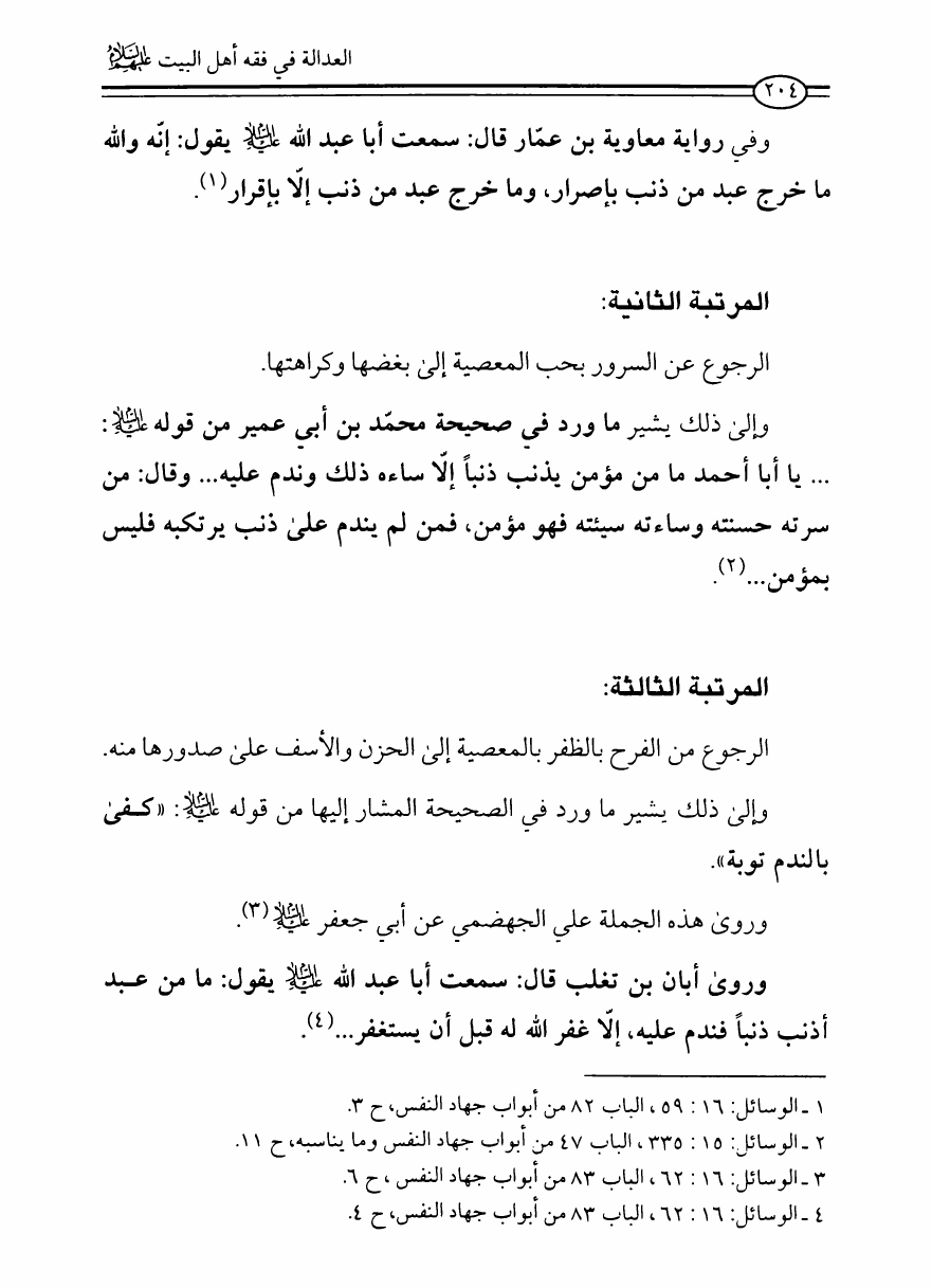 نام کتاب : العدالة في فقه أهل البيت عليهم السلام، تقريراً لبحث أية الله الحاج الشيخ مسلم الداوري نویسنده : الشيخ محمد علي صالح المعلم جلد : 1 صفحه : 204