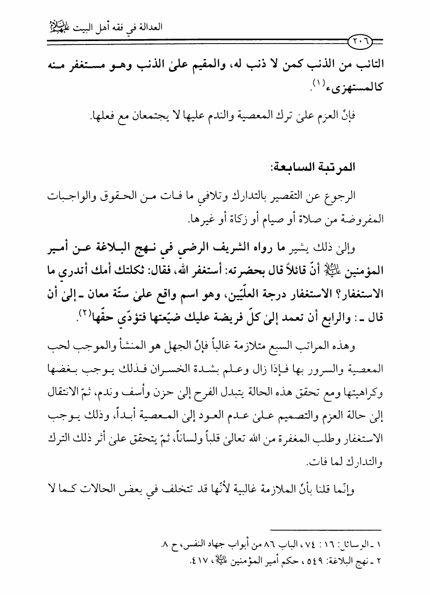 نام کتاب : العدالة في فقه أهل البيت عليهم السلام، تقريراً لبحث أية الله الحاج الشيخ مسلم الداوري نویسنده : الشيخ محمد علي صالح المعلم جلد : 1 صفحه : 206