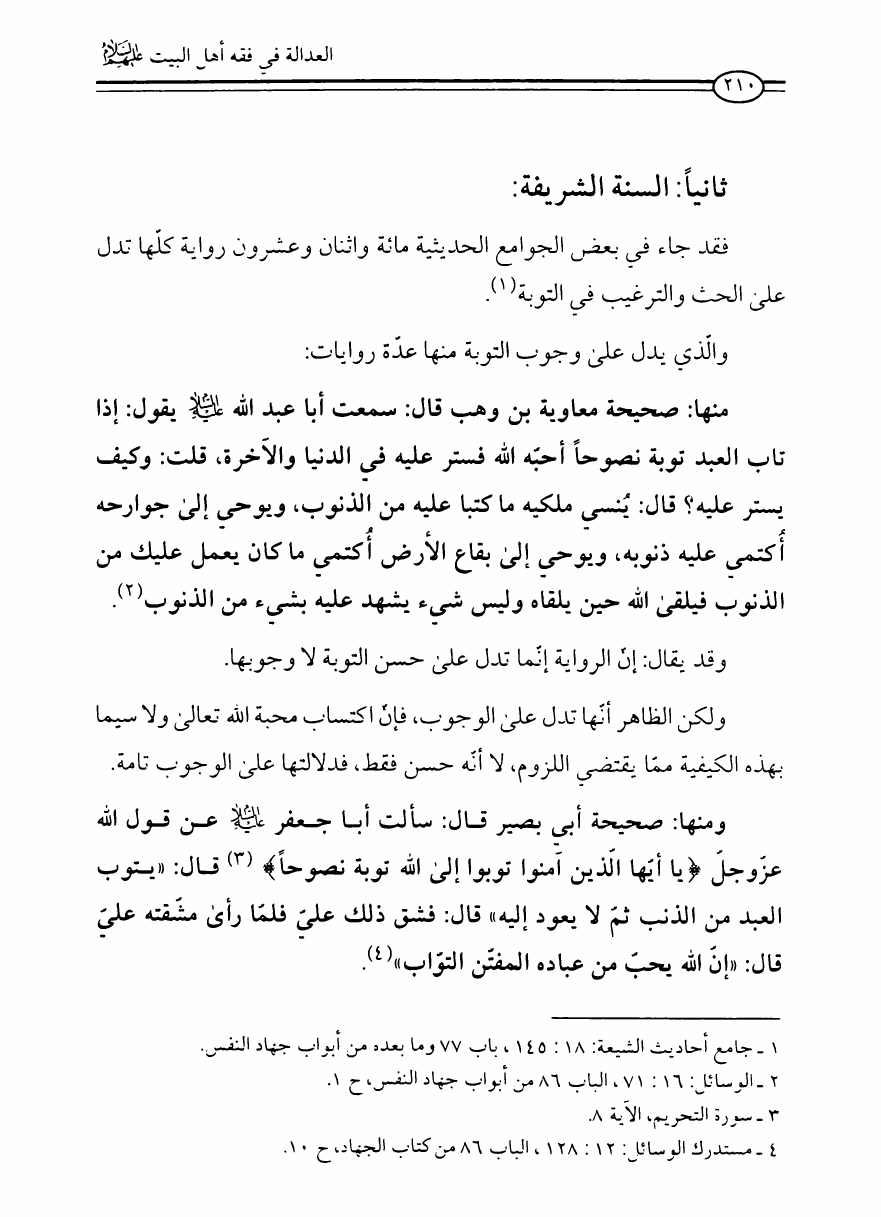 نام کتاب : العدالة في فقه أهل البيت عليهم السلام، تقريراً لبحث أية الله الحاج الشيخ مسلم الداوري نویسنده : الشيخ محمد علي صالح المعلم جلد : 1 صفحه : 210